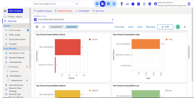 ....Inflow Seal Empower your digital defenses Inflow Academy Inflow Care Inflow TAC Inflow Seal Managed Security services Features: Discover: Automatically discover all your Network assets with our deep asset discovery capability. Optimize: Monitor your Network Assets for Uptime, Configuration issues and much more. Secure: Track Network Vulnerabilities and Exploits including support for Active Directory, Office 365 and more. Compliance Assessment Web Application Scanning Integrations with Ticketing tools and other Third party applications View Remediation Plans Role Based Access Benefits: Reduced Financial Risks Flexibility on Plan Selection Improved Compliance Better Risk Management Reinforced Operational Efficiency Increased Trust with Enhanced Security Enhanced Stakeholder Protection Dashboard View